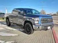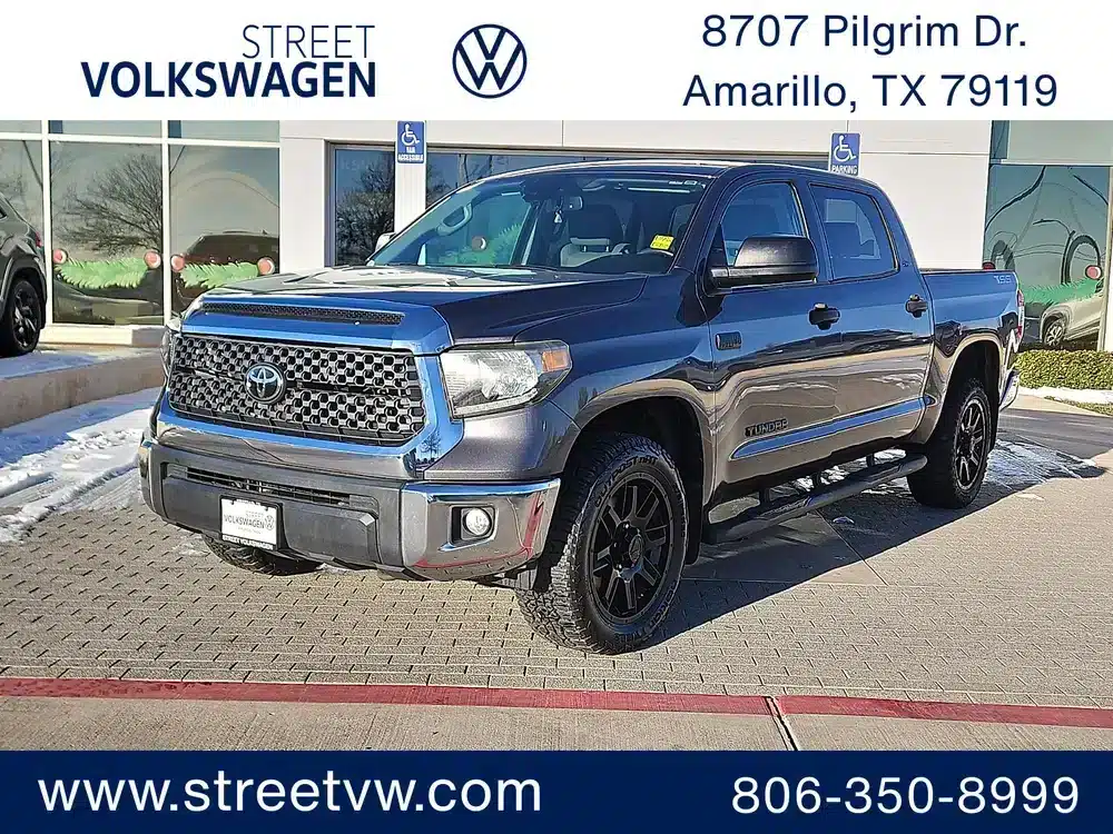 This Toyota Tundra is well equipped and includes, 38 Gallon Fuel Tank Capacity, Air Conditioning, AM/FM radio: SiriusXM, Anti-Theft Immobilizer w/Alarm, Apple CarPlay/Android Auto, Auto High-beam Headlights, Auto-Dimming Rear-View Mirror, Auto-dimming Rear-View mirror, Black Wheel Locks, Brake assist, Color-Keyed Power Heated Exterior Mirrors, Deck Rail System, Delay-off headlights, Electronic Stability Control, Exterior Parking Camera Rear, Front Bucket Seats, Front fog lights, Fully automatic headlights, Heated door mirrors, HomeLink Universal Transceiver, Passenger door bin, Power door mirrors, Power steering, Power windows, Radio data system, Rear step bumper, Rear window defroster, Remote keyless entry, SiriusXM Radio, Split folding rear seat, SR5 Upgrade Package, Steering wheel mounted audio controls, Urethane Tilt/Telescopic Steering Wheel, Variably intermittent wipers. 2021 Magnetic Gray Metallic Toyota Tundra 4D CrewMax SR5 4WD i-Force 5.7L V8 DOHC 32V LEV